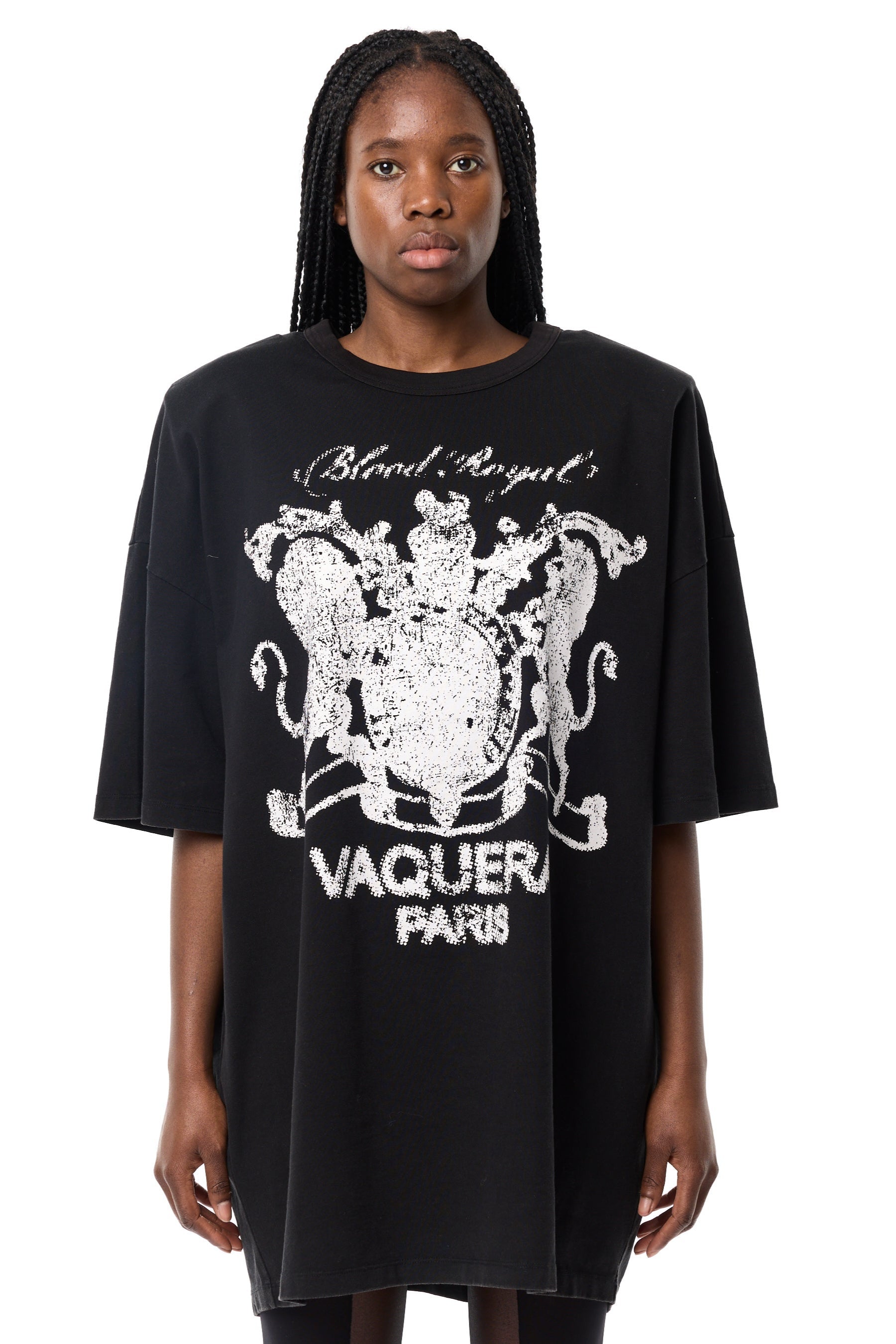 • Off black washed jersey tall tee with rib knit crewneck collar