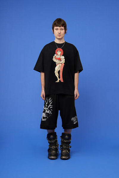 Made in Melbourne from original pattern design, to manufacturing, and printing, SLAMROSS1000 is known for bold graphics and oversized, unisex silhouettes with a gothic undertone. SLAMROSS1000 values authenticity and community, and is a living, breathing thread of the Melbourne underground from the buzzing anticipation of pre’s to depths of kick-ons.