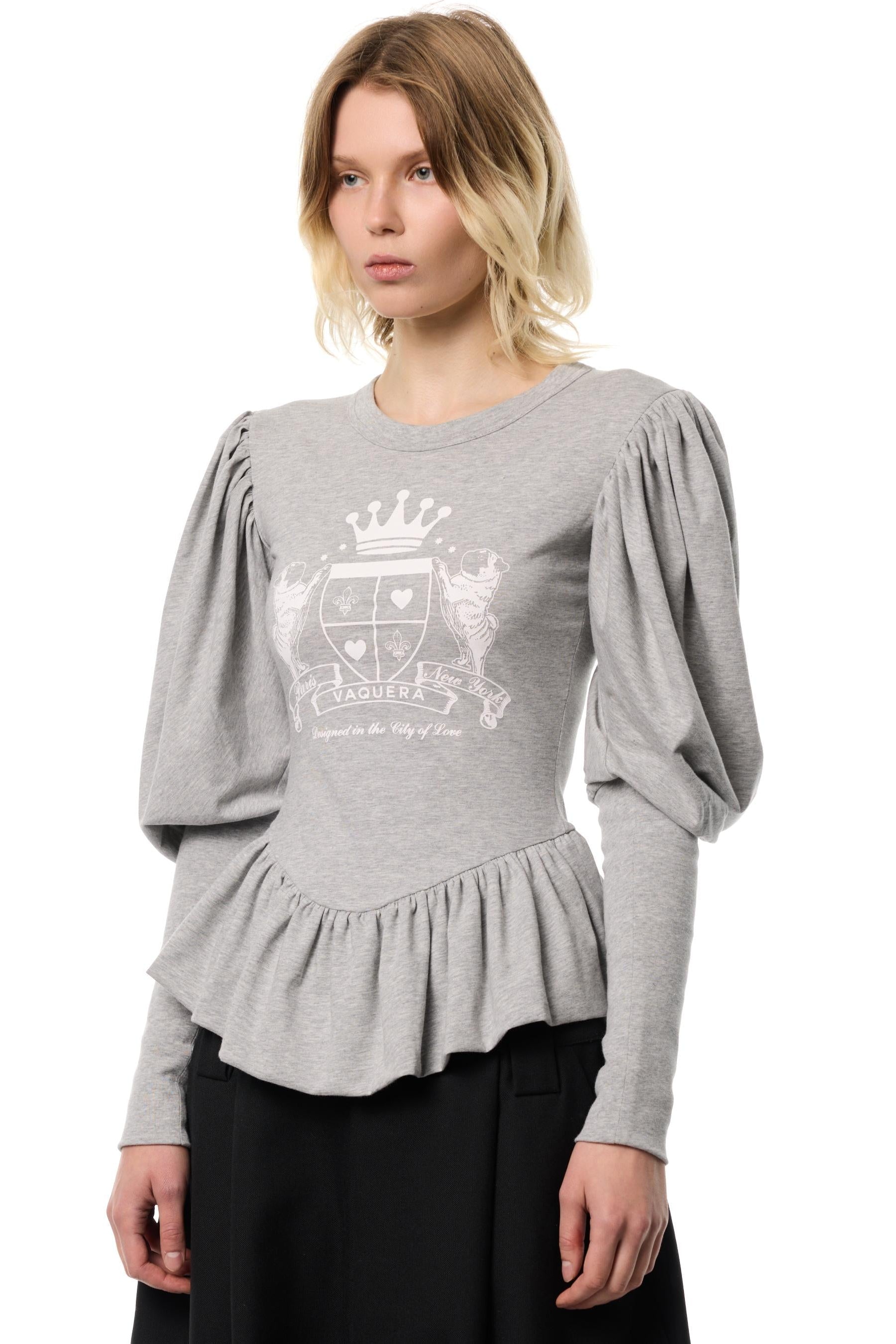 - Gathered peplum waist and gathered balloon sleeve with fitted cuff