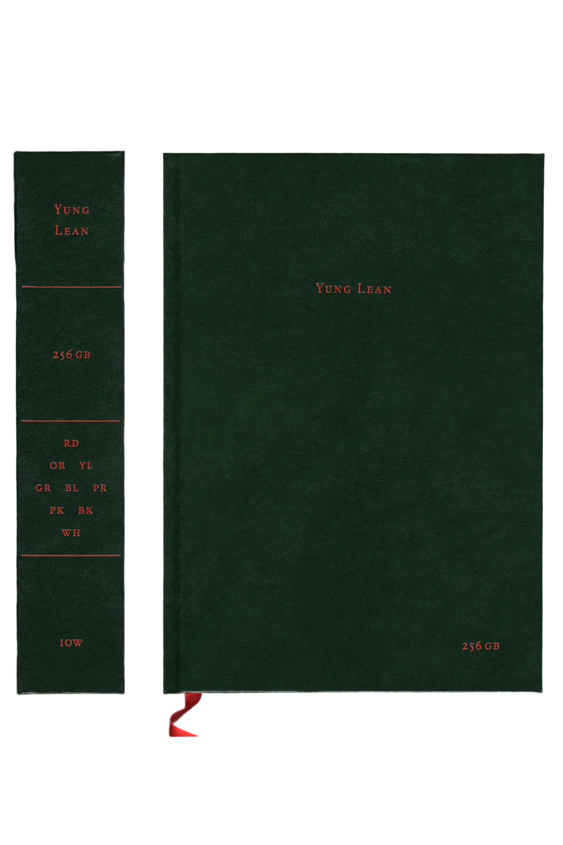 Collating 574 images shot across iPhone’s 6, 8, X & SE, the book exemplifies Yung Lean’s autonomous artistic production. The book was developed by OK-RM and Suzie&Leo in close collaboration with Yung Lean, together taking the intimate, extemporary images stored in Yung Lean’s personal photo library into a totemic classical book. Produced in Italy, the book’s material construction draws upon the 500-year-old tradition of bible-making of Legatoria Industriale Artigianale’s premises in Cava de' Tirreni. Red hot-foil typography graces a melanged green substrate. The spine paired with a red silk ribbon furthers the book’s aesthetic resonance. Each copy of the book is accompanied by a silver sticker sheet as a token of viral ephemera provoking the book’s classical endurance.