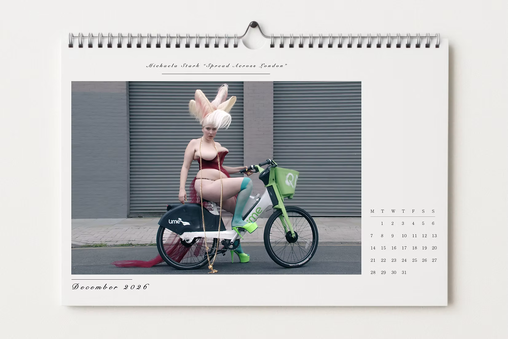 For this year's annual calendar, Michaela Stark took the streets of London with a video camera and a very intimate team to do a series of mini self recorded performances, taking stills from each performances for each month.